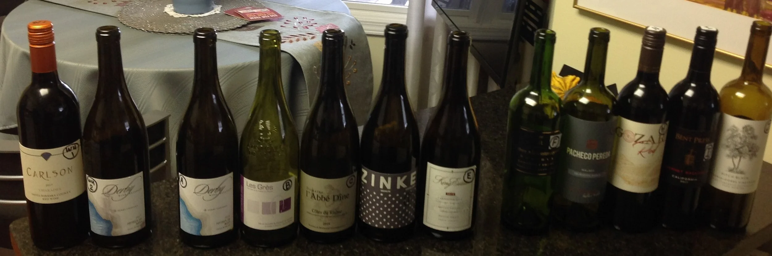 Every spring, Last Bottle, on-line wine seller, has their deep discount sale, and afterwards all the odds and ends are boxed up and sold as “mystery cases” or “mystery six packs”. They assure you that you won’t regret it. All of the packages are worth way more than what you pay for them. So we bought the cheapest case for $150. It was titled “Summer BBQ Wines.” Well, when the box arrived and we looked inside, we decided that it was a perfectly orchestrated wine tasting all ready to go. Two flights of five and two bottles to get everyone in the mood. So we volunteered to put on a tasting for our old GR wine group, the Rude Tasters, which has been getting together every month since fall of 1973, As always, the tasting is double-blind. No one other than Alice and I know what the theme is about and only I know which wines are served. Though I don’t know the exact order, I do know the theme of each flight and the theme of the warm-up wines.